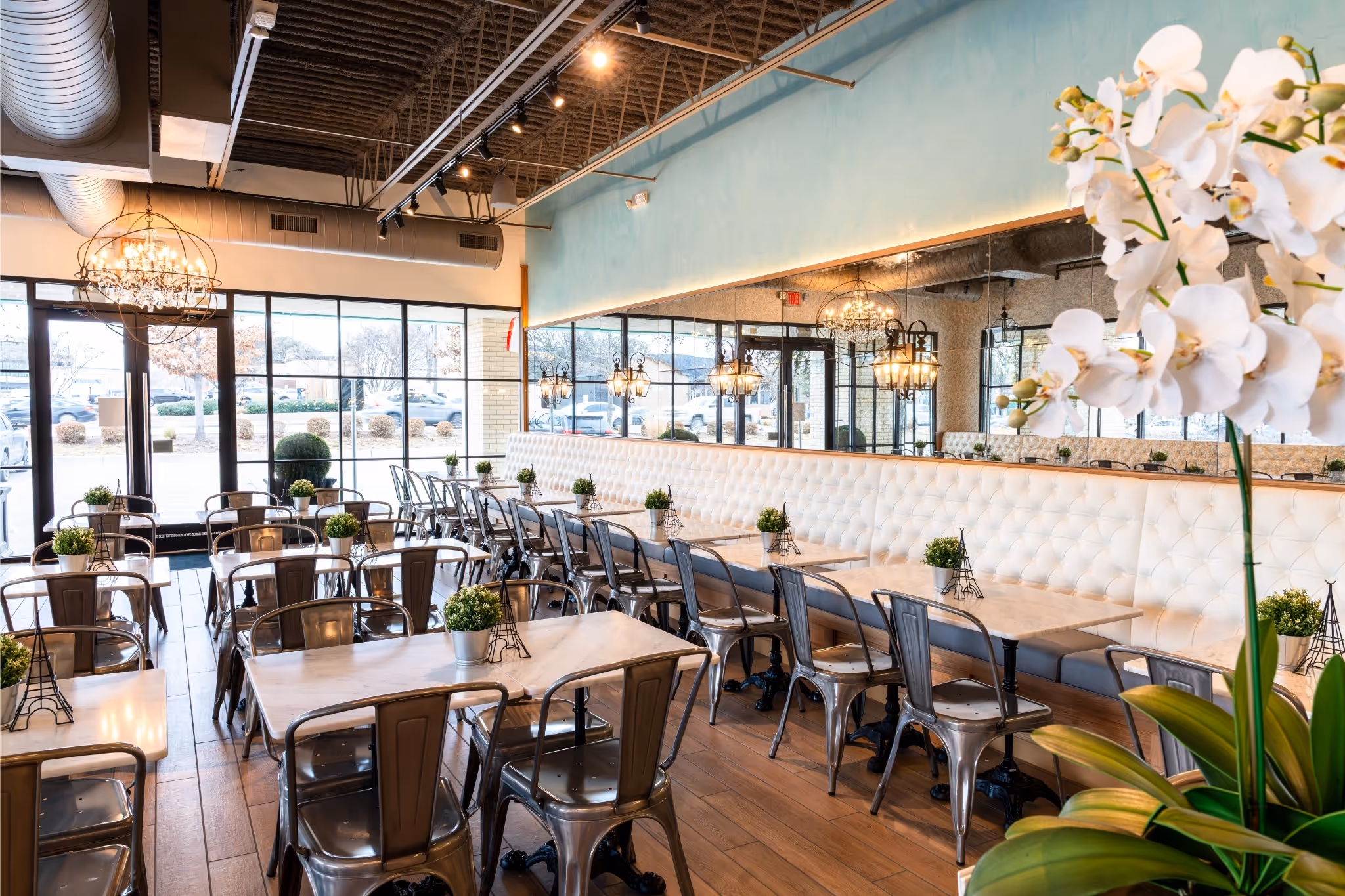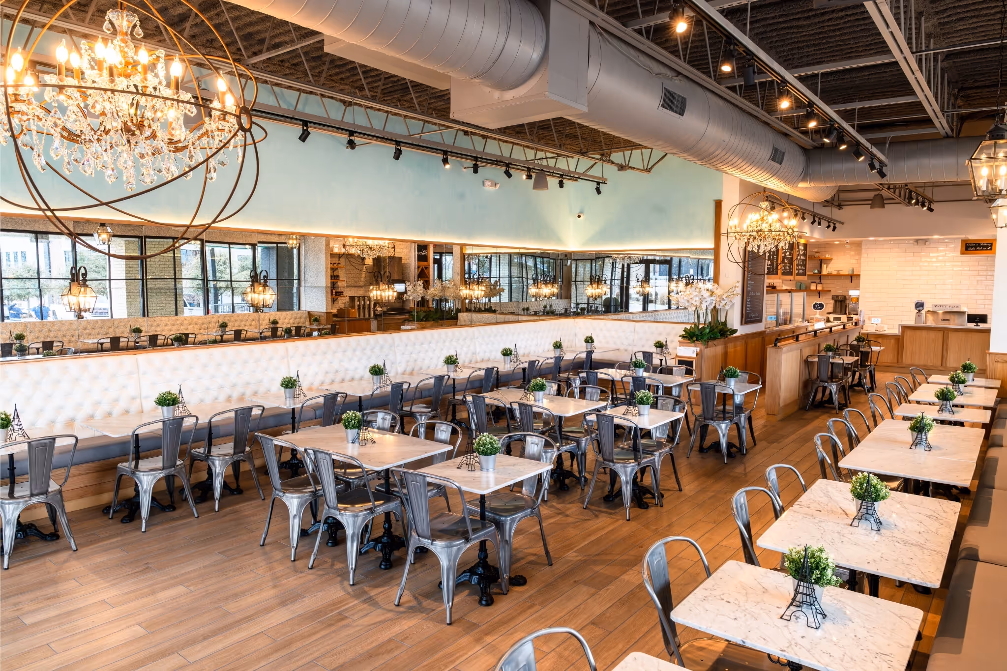 Sweet Paris Addison is a French crêperie and café in Dallas. Step inside and you’re transported to Paris — elegant chandeliers, a chic Parisian interior, and the aroma of freshly made crêpes from our open kitchen.